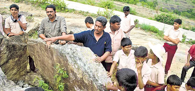 “This is when I accidentally met Government Fine Arts College Principal Alphonso Arul Doss, and he invited me to take part-time classes for college students. With his support, I started my journey to discover the world of cave rock art. Though I couldn’t finish my PhD, my experiences allowed me to forge an interest in the study of rock art,” he said.