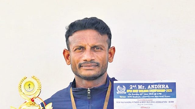 Notably, he secured fourth place in the 32nd Mr Andhra Bodybuilding Championship 2025 held in Vizianagaram in September in the 75 kg category. However, aiming for a gold medal, he recently lost 10kilograms in a single month to qualify for the 65 kg weight lifting championship. He succeeded and won the Mr Andhra title.