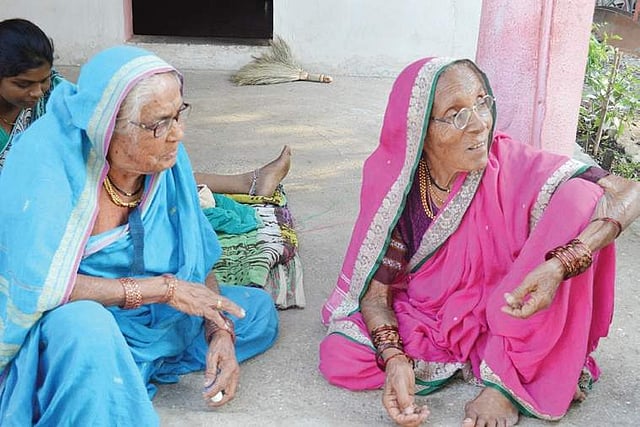 As we reached the village I started looking at every house curiously. True, there were no doors anywhere. As we stopped the car to take some pictures, Amol, a cheerful young lad with a sunny smile offered to show us around. His two grandmothers, Sakku Bai and Tulja Bai were sitting on the porch of their house, busy talking and laughing as many kids were playing around Amol said they all live under one roof, more than 25 of them in their family.