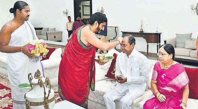 HYDERABAD: Telangana Rashtra Samiti cadre and leaders from all over the State celebrated the 66th birthday of Chief Minister K Chandrasekhar Rao on Monday. Saplings were planted by party activists and KCR’s family members alike keeping in mind the CM’s pet project Haritha Haram. Also, the CM’s son and IT Minister KT Rama Rao issued an appeal on Twitter asking people to celebrate KCR’s birthday by planting saplings and sowing seeds. Since the CM considers ‘6’ to be his lucky number, the number formed the theme of celebratory events.