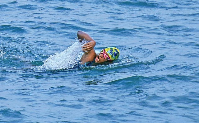 The mother of an engineering student, Syamala adds, “When I started, though the waters were choppy, the weather conditions, thankfully, were favourable. However, when I entered Indian waters, it became rough. Strong currents kept pushing me back.” Syamala, who swam freestyle, points out, “I had to battle through the tides and all I had in my mind was reaching the destination. This perseverance paid-off eventually.”