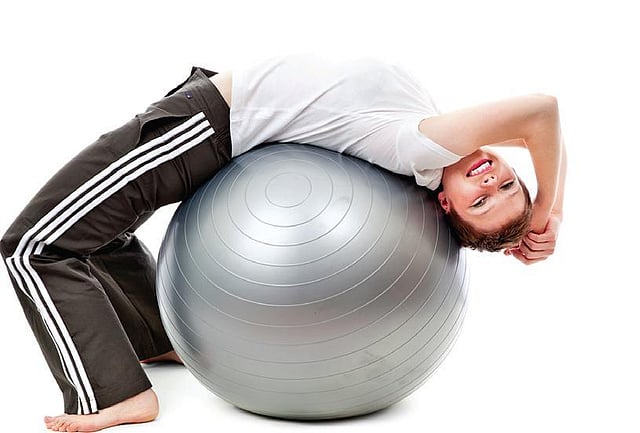 Ball bridges: Similar to crunches, these are done by resting on the ball and interlacing the hands behind the back of your head. It is a stretching exercise that helps work on the back and bottom muscles.