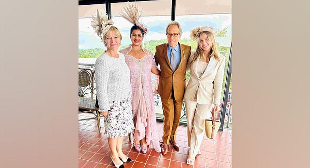For the outing, Sudha opted for none other than ‘couturier to the royals’, Manav Gangwani to dress her for the occasion. She donned a bespoke two-piece ensemble in dusty pink with handwork embroidery for the races. Her gown for the ball was in deep navy hues with a structured corset. It embraced intricate detailing, luxurious fabrics, and timeless elegance, and was a true head-turner! To top it off, Sudha was styled by Buccellati donning a truly exquisite high jewellery necklace in white and yellow gold, set with diamond stones, which took over two years to bring to life, a masterpiece crafted by hand.