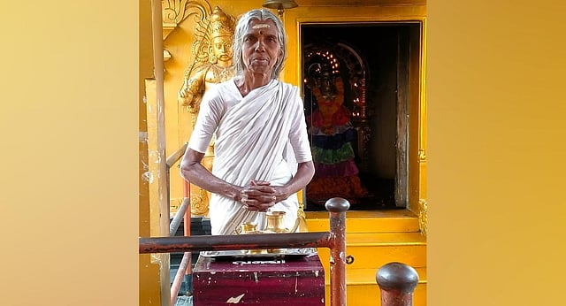 For 59 years, she has carried out her duties, preserving the invaluable knowledge and teachings imparted by her grandfather. After the passing of her father, E K Gopala Swami, eighteen years ago, she assumed the responsibility of head priest of the temple.