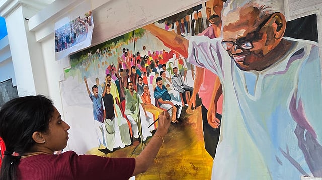 Sajith Panackal, M Hussain and Jobin Das from Kannur were among the other artists, who, together with Kavya, transformed the walls of Velikkakathu into a living canvas, making it a testament not only to VS' indelible political legacy but also to the enduring power of art to keep history alive.