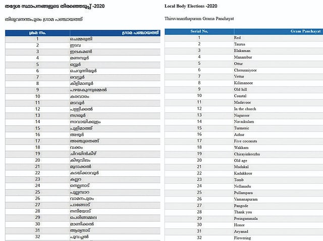 With a simple change in language settings, Thiruvananthapuram’s Nanniyode panchayat becomes ‘Thank You’. Ernakulam’s Poothrikka turns into ‘Mother in Law’. Kasaragod’s Kallar is rendered as ‘Thieves’. Idukki’s Santhanpara emerges as ‘Calm Rock’, while Thrissur’s Panjaal briskly reappears as ‘Runner’.