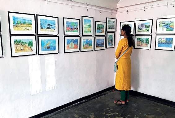 Prior to exhibiting their works, the young artists were given training on mark making, contour drawing, dark to light sketching and different painting strokes by their teacher and head of Chaitram V B Venu.