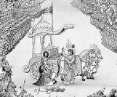 “I am time that destroys everything that is born, grows and proliferates. I destroy all the worlds. All those armed warriors, even if you do not fight them, are not going to exist anyway,” says Krishna, urging Arjuna once again to get up and fight. Referring to Arjuna as Savyasachin or an ambidextrous archer, basically highlighting his capabilities and prowess, his Guru, the charioteer urges him to get up and fight. If he won the war, he would enjoy ruling the country. The significant message was that, “All these people have already been killed by me!” He lists the names—Drona, Bheeshma, Jayadratha, Karna and all the warriors.