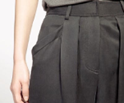 Trouser Pockets: The front pockets are simple up-and-down slits, with minimal hemming. Pockets are not meant to attract attention. Hemmed, slanted ones are casual. Back pockets are mostly single unadorned slits, but horizontal. Pocket flaps on the back pockets take away from the sleek formal look, and buttons should be discreet. Pockets may be eliminated altogether on trousers that are part of a suit. This way, the trousers appear completely even in the back, and are more comfortable while sitting.