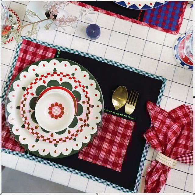For Mumbai, the collection pays tribute to the two faces of the city—the daily rush ruled by the clock at CST and the moments when time stands still. “By weaving these two elements into a single narrative, the collection honours both the breakneck pace of everyday life and the timeless enchantment of shared stories,” says Sinha. The Love Letter to Kolkata collection is based on two iconic symbols, the headgear—red and white gamcha—and the transom windows. “Together, these elements celebrate the city’s timeless charm: where history is gently preserved, and modern life flows in with ease,” says Sinha. In Chennai, the collection is an ode to the Athangudi tiles as well as the kolam drawn each morning.