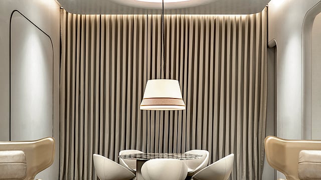 The collection uses an interesting material palette of Italian marbles, plush fine leathers, Loro Piana upholstery fabrics, rich wood, and metal. “We can see a unique design vocabulary in the Milano Dining Table’s rounded form and gently arched base and the Sistine Chair’s playful, scooped shape. Another key piece is the angular Pence Chair, which avoids sharp edges; its leather boards are skilfully bent and shaped to suggest a soft, nearly sheet-like tactility,” says Vohra. The Vault Island integrates cabinetry and customised storage, a quiet testament to Ravoh’s devotion to both form and function.
