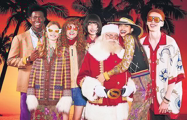 Conceived by the brand’s creative director, Alessandro Michele, the aquatic escapade hosts the spirit of Christmas on the sea with decorative regalia from trees to tinsel, juxtaposing the traditional codes of winter staging a more temperate and tranquil setting under the sun.