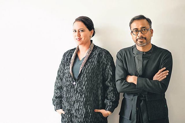 The colours take the ‘wild’ stories forward as well. “Everything follows the winter season. We’ve played with greens, charcoal, dark brown, black and more,” explains Garg. Two hues that both of them love equally are bright yellow and resplendent red. The deeply pigmented yellow is inspired by the Amaltas flowers. “The yellow of turmeric is equally inspirational for its cleansing, calming and healing properties. The sun, the source of all light, has one of the most beautiful shades of yellow. And all of them combined, make for a striking presence in the collection,” shares Anjali.