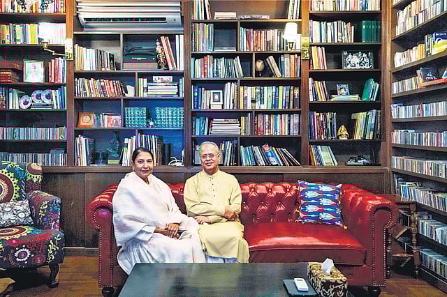 On being posted back to India they were lucky to find a large, beautiful house full of light and air, the unique feature of which is a charming walled courtyard at the back of the house, full of lush greenery. The house provides a perfect setting for their collection of rosewood furniture, paintings, carpets, textiles and objets d’art and is a testimony to their exquisite taste and extensive travels— although Dipa insists that its Atul who has the unerring connoisseur’s eye, and she is largely responsible for the looking after!