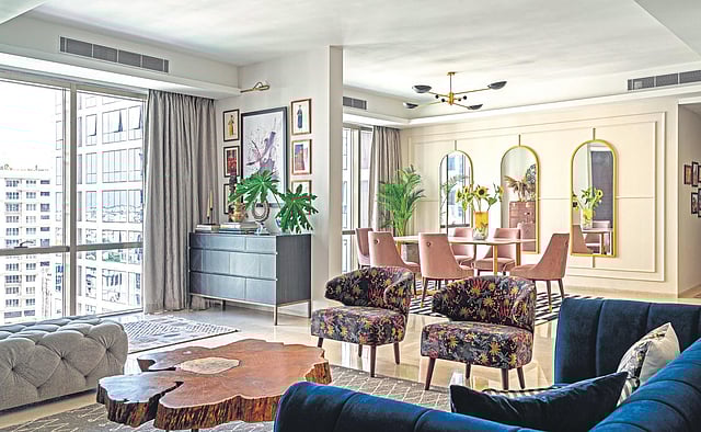 “We wanted to ensure that the client’s personality shone through, which is why delicate glamour was an important part of the brief,” says Farah Agarwal (founder, Chestnut Storeys), who designed the space. “Ample storage was another key demand, yet in the most sophisticated manner possible,” she adds. Attached to one of the best malls in Chennai, this 3,500 sq ft home has huge amounts of natural light that keep the space nice and airy. The designer made full use of that by retaining the open floor plan and keeping the wall colours light.
