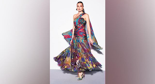 The Kalahari print, which finds prominence in maxi skirts and dresses, is an example. There’s also the cocora print used in blazer coord sets and full-sleeved blazers. “Warm hues such as cranberry red, deep forest green, mustard yellow, navy blue, black and burnished gold have been used. Fashioned predominantly from silk, satin, banana crape and a bit of cotton, key techniques employed are appliqué work and hand embroidery embellishments in 3D beads. The print motifs are mostly flowers and abstract patterns with generous use of pearls, beads and sequins,” shares Aggarwal.