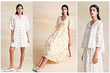 Keeping the unforgiving summer heat in mind, cotton, linen and silk have been used generously, with every fabric custom-made in small batches by hand-weaving clusters from West Bengal, Rajasthan and Gujarat. “The line comprises mostly a set of whites with a few pastels, featuring hand-block printing, embroidery, pleating, hand smocking, and appliqué work,” she says, adding, “We also use biodegradable packaging with compostable plant-based polybags, and seed tags made of post-consumer cotton waste, in addition to reusable cloth bags. Additionally, we operate on a made-to-order model, eliminating the need for a large inventory, which invariably leads to overproduction and wastage.”