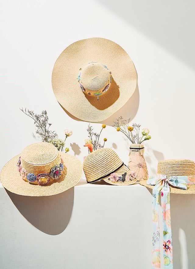 Called Blossom, the collection is a result of the creative synergy between Lodha and Mumbai-based fashion designer 47-year-old Payal Singhal. It features motifs of petunias, poppies, asters and begonias, bringing together the softness and grace of these delicate blooms. “The deep caramel-coloured Aster Floppy hat with a wide brim is a go-to choice for sunny destinations. Its elegant construction makes you stand out even if you’re not dressed up. The Carnation wide-brim boater hat made of straw comes with a flat crown and cuts a classic figure. Ideal for summertime strolls and outdoor sunbathing, its decorative band with floral motifs makes it the right amount of dressy.