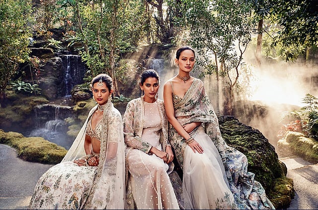 Rooted in Rajasthan, this luxury brand’s versatile designs transcend borders and occasions. Her Spring-Summer 2025 couture collection,Vaana, pays a poetic tribute to transformation, heritage craftsmanship, and the effortless beauty of nature. Flowing silhouettes, intricate handwork, and soft, organic hues reflect the ever-evolving landscape of the natural world. Featuring the 400-year-old art of hand-painted Pichhwai and the designer’s signature Gota Patti embroidery, the collection is a masterclass in artistry and craftsmanship. “This collection is for those who embrace change with confidence, while staying deeply connected to their roots,” says Dongre.