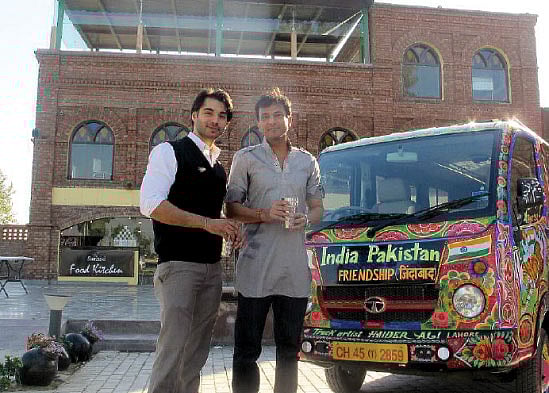Adding a splash of bright colour to the setting are two vehicles painted by Haider Ali, Pakistan’s most celebrated truck artist. A mini van and mini truck sport Pakistani truck art with motifs being Punjabi culture and Indo-Pak peace. Both vehicles are parked outside the restaurant and are hard to miss.