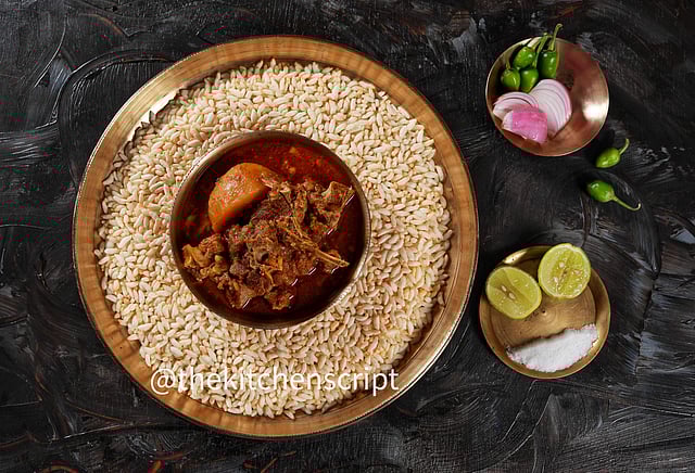 Akshita, for whom a bowl of ‘garma garam’ Mudhi Mansa is a Sunday treat recalls how the British soldiers were enamoured with the happy blend of spice and sweetness of a dish. She adds, "It was till date believed to be a Mughal culinary gift to Odisha. It is not. It is as old to Baripada as our Nardi Mudhi, a royal favourite.” Nardi is a old paddy variety from Mayurbhanj. The extreme localisation perhaps explains why Mudhi Mansa remains such a classic fascination.
