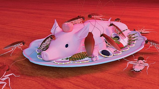 Adi Sundoro’s two-dimensional works talk about how the food distribution process has been carried out internationally. Bakudapan’s work observes the connection between politics and food. Fajar Abadi’s installation work discusses snacks we eat during our leisure time. Natasha “Tontey” Gabriella’s works comment on the sustainable future led by pests with a cockroach figure since it is the only species that survived despite many extinctions. XXLab’s installation and video works talk about the process of industrial waste that produces tofu into ready-made fabrics. Most Asian countries have similar cultural backgrounds, and are also similar in food relations, bio-political practices and the way people consume food. In that context, the show aims to make people aware of how the chain of food production and distribution have their exclusive scale in influencing ethical, economic, and artistic values.