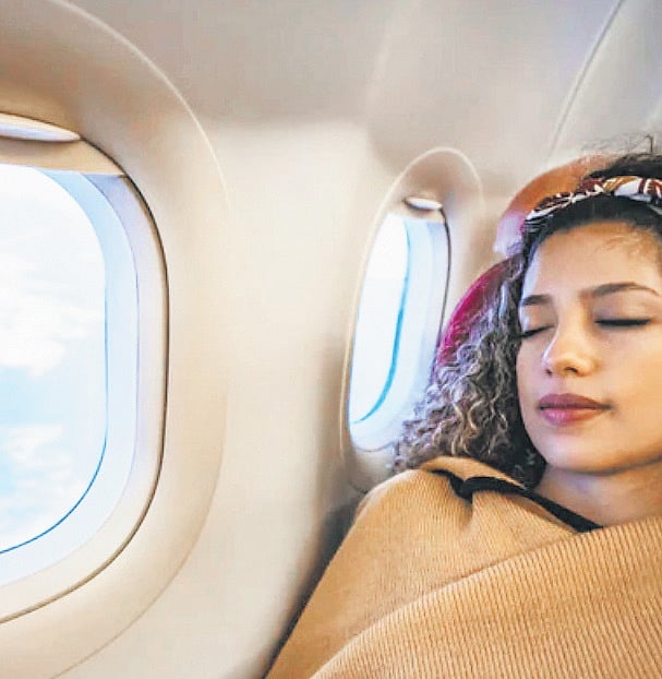 The way these planes are designed, the humidity is less than 20 per cent, making our skin quite dry. In addition, you’re exposed to the sun rays at a high altitude. Those who are prone to oily skin will feel that more during the flight. Make sure you have a moisturiser, sheet masks, and lip balm handy while flying. Don’t underestimate the power of a good quality thermal spray or rose water. Now, depending on the flight time, keep applying moisturiser and lip balm every hour to combat the dryness. In case you have the time for it, use a sheet mask as well.