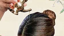 It is always good to perform head oiling before a head bath. Usually, 15 to 20 minutes before a bath, about 10–15 ml of oil can be applied to the scalp and gently massaged with the fingers. Applying oil to the scalp has effects beyond just hair. According to Ayurveda, there is no need to use shampoo after oiling; it can be washed off with water. Though it varies individual to individual, oiling the scalp three times a week is considered a good practice.