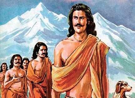 The essence of the Mahabharata is carved out through two beautiful verses explained by the story-teller Sauti. He said he would describe the quality of two trees which yield everlasting fruits and flowers. These flowers are full of beauty and the fruits are tasty, enjoyed by the gods too. Veda Vyasa, the author of the Mahabharata, gave birth to three children through the two wives of Vichitravirya. Thus were born Dhritarashtra, Pandu and Vidura.