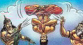 The kind of obstacles that may come our way when we take up an intense task with a goal is told in the many incidents that happen to Vishwamitra. There was a king called Trishanku of the Ikshwaku race. He was a truthful person and wanted to do a fire sacrifice. His wish was to go to heaven without leaving his body behind.