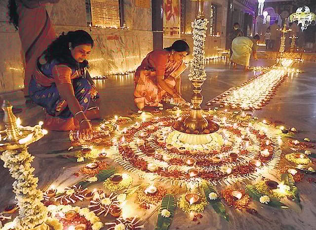 Children, God incarnates on earth when dharma declines and adharma flourishes. The day of Diwali is celebrated to commemorate the return of Sri Rama after killing the mighty Ravana, when Ayodhya celebrated by lighting lamps all over the kingdom. It has a symbolic meaning as well. Rama is believed to be the very embodiment of dharma. Avatars teach people by personal example. They reflect the limitations of the age they live in. Like everyone else, they, too, have to undergo trials and tribulations in life. They teach us not how to evade problems, but how to live in their midst without compromising one’s ideals and values. They show us how to face the trials of life with unruffled poise. Thus, their lives serve as an inspiration for us to follow the path of dharma.