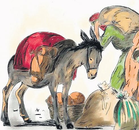 A washerman was carrying bags of salt on his donkey’s back. The donkey, trying to ease its burden, made a lot of noise. As they crossed a stream, the animal deliberately fell into the water, and much of the salt dissolved, making the load lighter. Realising this, the washerman decided to teach the donkey a lesson. The next time, he loaded it with cotton instead of salt. When the donkey tried the same trick of falling into the stream, it was surprised to find the load much heavier as the cotton absorbed the water.