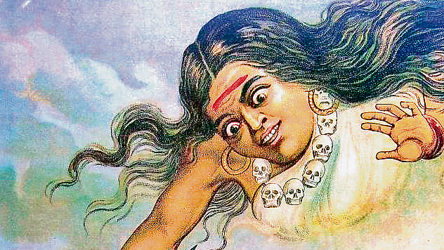 Inspired by Vishwamitra’s words, Rama grasped the middle of his bow with his fist and twanged the bow. The terrible sound filled all directions and attracted Tataka to the spot. She was gigantic in size, malformed in features, and extremely angry. On seeing her, Rama’s warrior ethos overpowered everything he had been told. He said, ‘O Lakshmana! She is invincible and possesses the strength of Maya. I will now make her withdraw by severing her ears and the tip of her nose. Since she is protected by her nature as a woman, I do not wish to kill her. It is my view that one should only destroy her valour and her speed.’ However, Tataka invited her own end by attacking Rama. Raising her arms, she roared and rushed with great force towards Rama. Left with no other option, Rama shot an arrow at her and slew her.