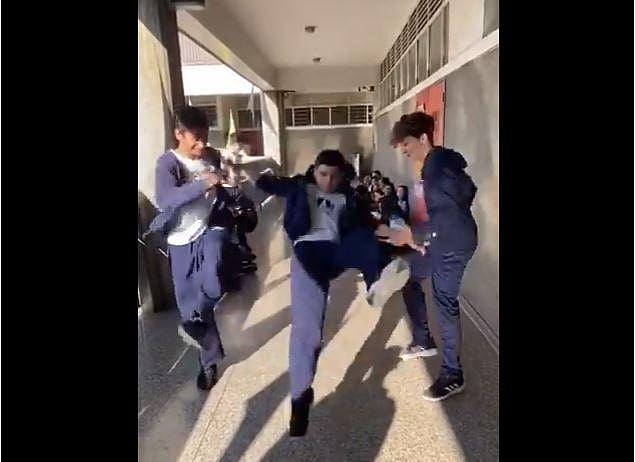 Three students attempting the 'Skull-breaker Challenge.' (Photo | TikTok Screengrab)