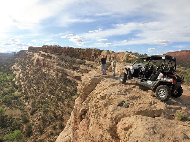Jared, who still does some teaching at Utah State University’s Blanding campus, belongs to the few who have made it their vocation to lead tourists through this seldom seen wonder-world. Five jeeps, a Humvee, three RZR buggies and four ATVs are available for hire outside his travel office in Blanding, Utah, where his family runs a small bed and breakfast.