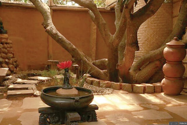 Not so much of a resort than a homestay option, everything at Aura Kalari seems to be under the benediction of the great mango tree in the central courtyard, which provides shade for the the adjacent mud cottage, relaxation rooms and compact kitchen, as well as the foundation for the treehouse, which is an excellent vantage point from which to survey the surrounding countryside, and to spy the high-rise buildings on the horizon, the only indication of the city we’ve just come from. While the mud cottage (which comfortably sleeps five), the ‘Buddha stone’ courtyard room and the tree house (which sleeps two or three) can be rented out separately, this space makes most sense as an uninterrupted unit, perfect for a large family on holiday, groups of friends, college reunions and corporate outings for up to 10 or 12 people.