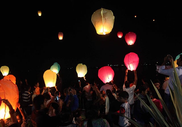 "We sell around 20 lanterns per day. We make the lanterns ourselves while the paper is sourced from outside," lantern-seller Liad Jiahuei told IANS.