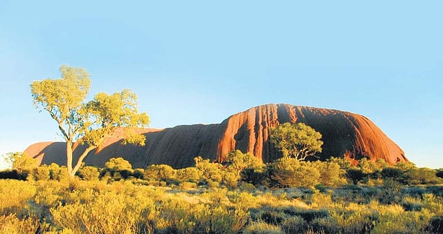My first glimpse of the structure was through the aircraft window, when it appeared like a huge, bacon-red protrusion, dominating a red-soiled landscape with nothing around it other than a few patches of green. The second glance was from a rising sand dune close to my accommodation at the Ayers Rock Resort, still distant. It struck me like a giant elephant thrusted half in ground.