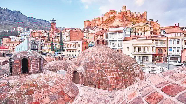In Abanotubani, the old Bath District of Tbilisi under the imposing Narikala fortress where the air has a rotten egg odour, children clamber on the brick cupolas of the cluster of subterranean bath houses with filigreed glass doors, located along a rambling stream. Not many know that piping hot sulphur springs bubble underneath the ground here. In fact the thermal spring water is the reason the city exists. The name Tbilisi comes from the Georgian word ‘tbili’ which means warm and is derived from the hot springs that still exist. These geothermal springs are a cherished part of the culture and identity of this city, the capital of Georgia, located at the crossroads of Europe and Asia, and enshrined in its pop culture, music and poetry.