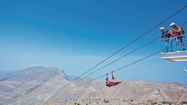 The Emirate delivers perhaps its most dramatic experience at Jebel Jais mountain—located in the Hajar Mountain range bordering Oman. These rugged peaks, and dramatic slopes are home to wild Arabian goats, red fox, and elusive wild cats. Legend has it that the extremely rare Arabian leopard also roams in the range, but it's sighting is as rare as a snowfall in the desert terrain. Up here, the cool breeze offers an escape from the Emirati heat. The mountain hides one of its most gripping experiences, the world's longest zipline or the Jais Flight. Stretching over 2.83 km, it zips you up to 150 km/h through the breathtaking view of canyons and valleys.