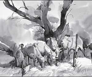 Sadhu Aliyur creates picturesque landscapes, putting man against the vastness of nature.
