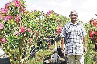 That is no idle boast. In 2004, armed with 150 adenium plants, he started to cultivate them in earnest on his ancestral property. Since then the numbers have multiplied, from 150 to 300, 300 to 3,000 and 3,000 to 30,000.