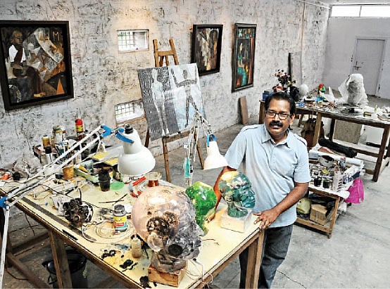 He develops his works from the archives of his experiences and exposure to Indian tradition. Chippa Sudhakar, a Hyderabad-based artist, who recently showcased his multimedia works at Gallery Veda in Chennai, engages with different media to build a narrative through metaphors and symbols, giving a voice to his concerns about contemporary reality. Chippa uses wood, glass and resin in acrylic for etching, carved relief and colour washes.