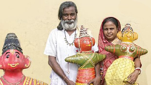 “The marriage of ‘Jau Kandhei’ is an ancient culture, which has lost its charm over the years, with plastic toys and feng-shui items flooding the markets,” says Baleswari Kalakendra secretary Kesudas. “So, we are trying to rejuvenate the dying culture and promote the art form.”