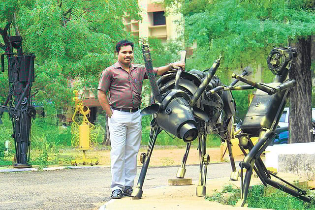As you enter the campus of Madurai Kamaraj University in Tamil Nadu, it feels like being on the sets of some sci-fi action movie, with metal characters staring at you from along the streets. From the ferocious bull to the 20th century robot, everything has been created by K A Babu—assistant professor and head of the department of art history—and his team using scrap metal and other junk items collected from the campus. “What we have done here is often called as ‘Junk art’ in the art world. But our aim is to leave a strong message for the onlookers,” says Babu.