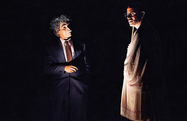 Bhashyam has donned the role of Gandhi in this play and he says, “We auditioned many but could not find anybody and with the date of the show nearing, I had to cast myself. I am a lean and dark guy and people asked me to cast myself for this role. I was not keen on acting being the director. I am a control freak and with so many hats to wear, it becomes tough.”With a decade of experience in the film industry, Bhashyam reveals that he is a high school drop-out from Bengaluru. Dabbling in different fields, he worked as a graphic designer and film reviewer, and assisted well-known film directors like Girish Kasarvalli in Karnataka, and Kamal Haasan, Singeetam Srinivasa Rao and Mani Ratnam in Tamil Nadu.