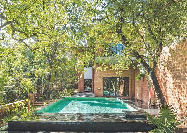 Moira by the Church is an award-winning two-level 710 sq m villa built on a 1,297 sq m plot. The house overlooks the charming Moira church on one side and a Shiv temple on the other. The lush paddy fields further soothe.The beauty of the property is enhanced by its modernist architecture. “We used local materials because the house should be one with the place it is built in. We tried an innovative inclusion of laterite in the construction, interiors and landscape. The textured surfaces give it a rustic and earthy feel and the exposed, concrete ceilings gives it that expansive look,” says the design maestro.