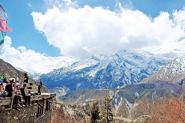 Mount Annapurna is one of the highest peaks in the Himalayan ranges in Nepal at over 8,000 metres with Thorang Pass La being its apex point at 5,416 metres. Adventure is just a breath away on this route—like passing a huge valley on suspension bridges. At Marpha (2,670 mt), one can see Nyingma monastery where there is a 400-year-old monastery along with a newly build one. In the old building, there is Buddhist text written in gold ink that dates back to at least 600 years. One can see many other monasteries as well, and interactions with monks and devotees will enlighten one with interesting facets of the religion.