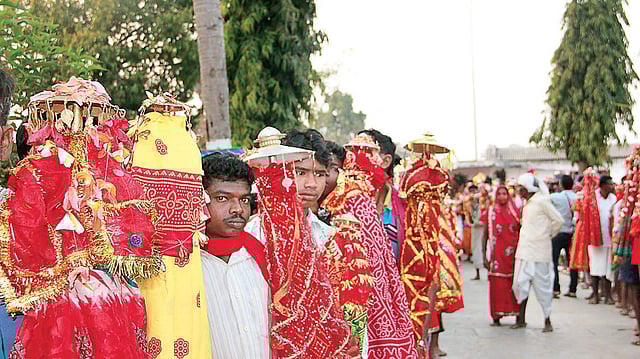 Over 500 tribal communities including Gondi, Dhawla and Halba collect in this small town, with their local deities. Nightlong jatara or folk theatres continue in another part of the temple campus. Scent of mahua and salfi—drinks made from the sap of these trees—fills the air, while the tribal folks in colourful costumes energetically present their rituals to venerate Goddess Danteshwari, who is considered the chief of all deities in the region, and thank her for the year’s harvest.