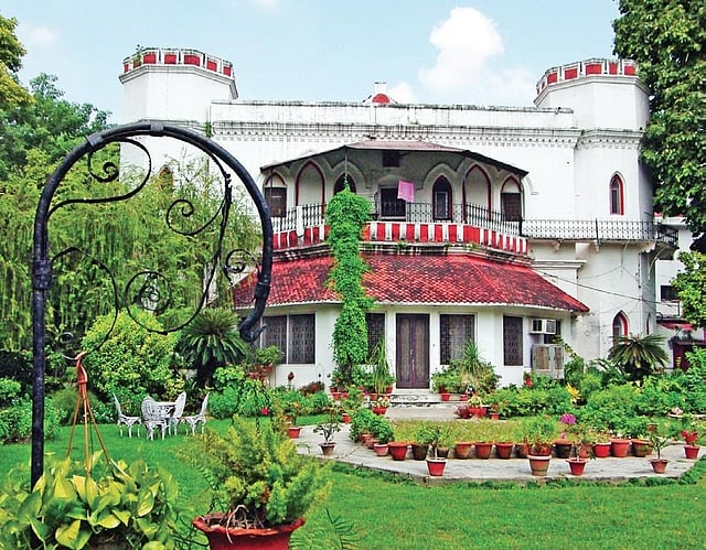 This unusually-shaped double-storeyed structure is hexagonal in shape at the rear. That is where its pretty garden is, too. On its north lies the Gomti river. In the past, some 1,25,000 sq ft of the property sloped down to the river.The home of Lord Hameed, a life peer at Britain’s House of Lords, was shown as the minister, Mahesh Kapoor’s home. This single-storeyed colonial-style bungalow sits on a large plot of land with enormous trees. A driveway leads from the gate to the portico while there are large gardens on all sides.